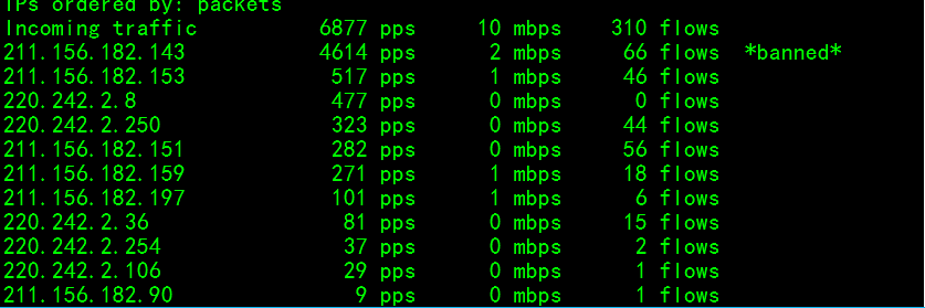 /opt/fastnetmon/fastnetmon #打开监控控制台