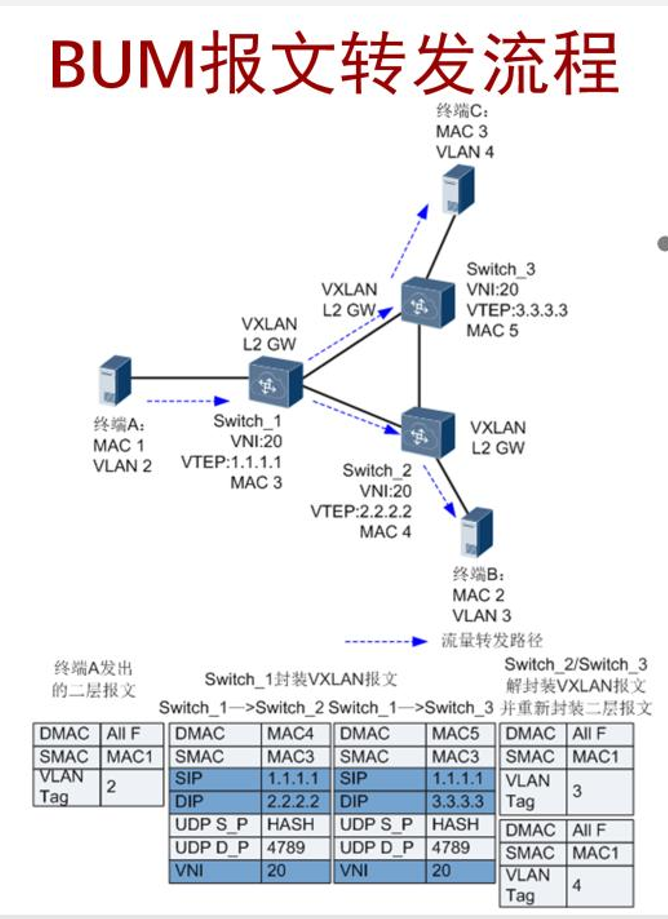 一种是BUM(broadcast&unknown-unicast&multicast)报文转发,一种是已知的单播报文转发