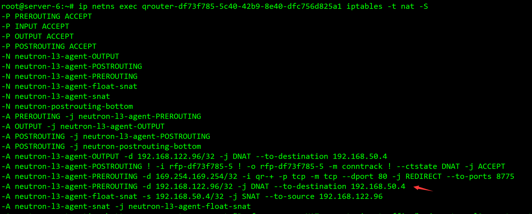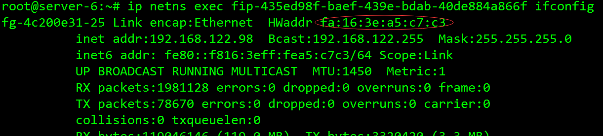 当创建一个实例时,会自动在实例所在的compute节点创建一个qroute-xxx 此qrouter-xxx的ip和mac都与control节点的一样。