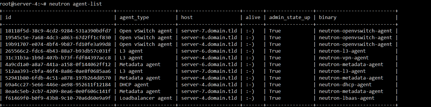 1 | 重启neutron-server、netron-l3-agent ,openvswitch-switch 服务。 |