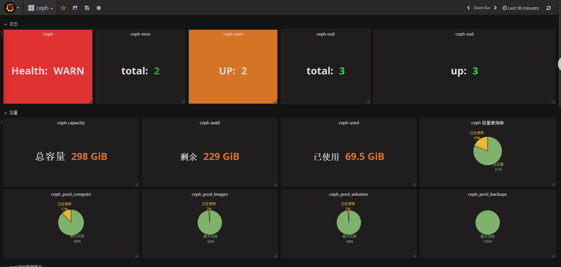 除了组件上的监控外,其实少不了还有硬件上的监控,比如说,在私有云生产环境中,网卡都是会做bond的,做了bond的好处是当其中一个网卡出现故障时并并不是影响到整个集群,但你也得通过监控发现这个挂了的网卡,然后准备更换,ceph的osd down了,有可能是osd进程被kill掉了,也有可能是硬盘坏了导致osd进程挂了,这也都通过监控去发现。