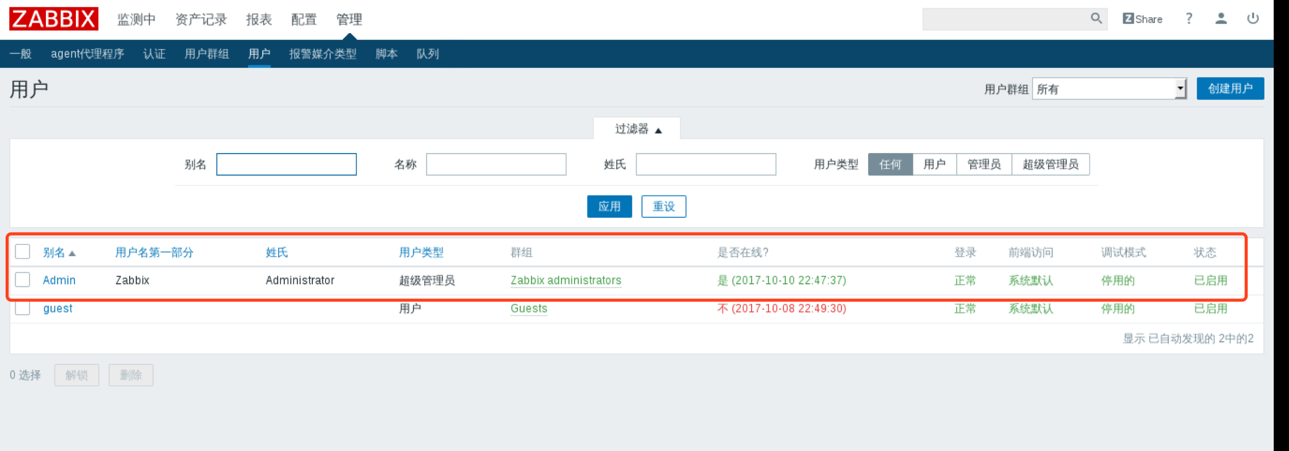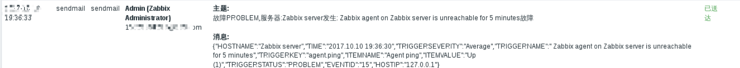 测试将zabbix-agent关闭等待5分钟。动作日志。