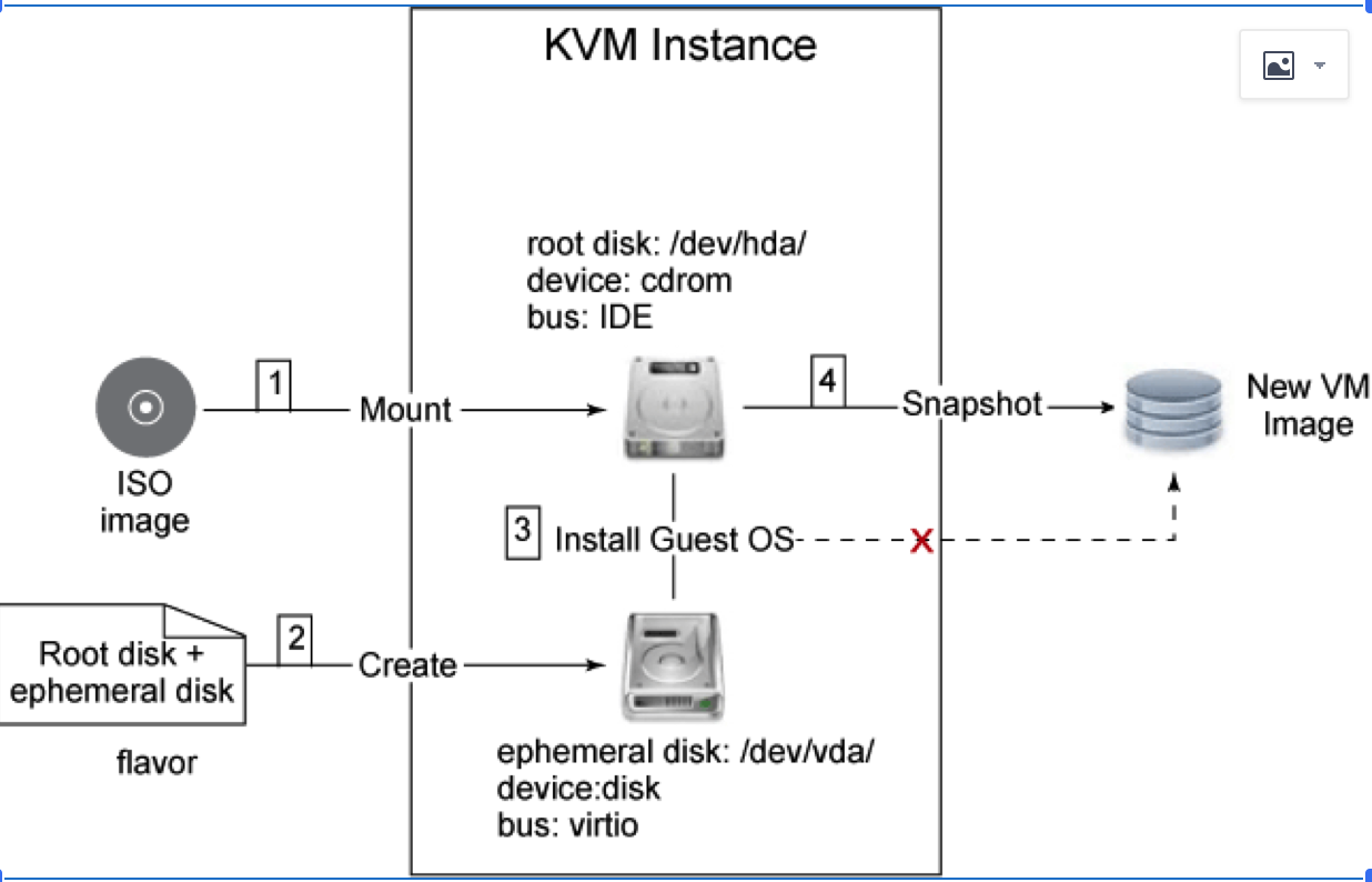 可以通过修改libvirt代码将cdrom mount到临时磁盘,根分区用来安装系统就解决了这个问题。