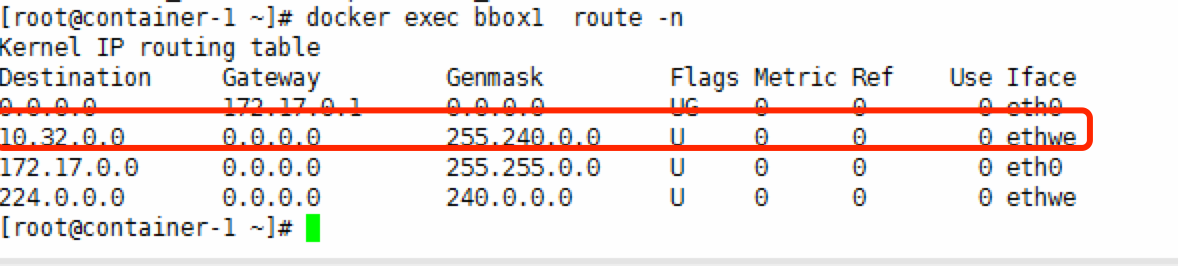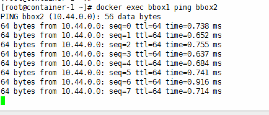 bbox1和bbox2的地址为10.32.0.1/12、10.44.0.0/12, 子网掩码都是12位的,实际上这3个ip都位于 weave网络的10.32.0.0/12,通过container-1和container-2上的vxlan的遂道连接在一起。