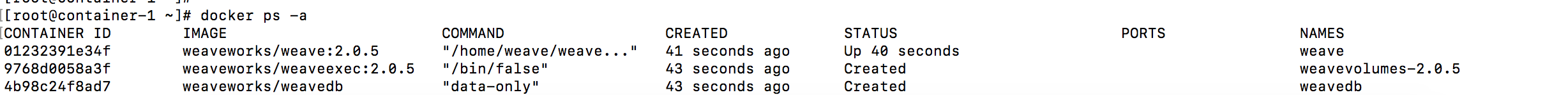 特别说明:声明环境变量的作用是告诉后续的docker命令都发给weave proxy进行处理。