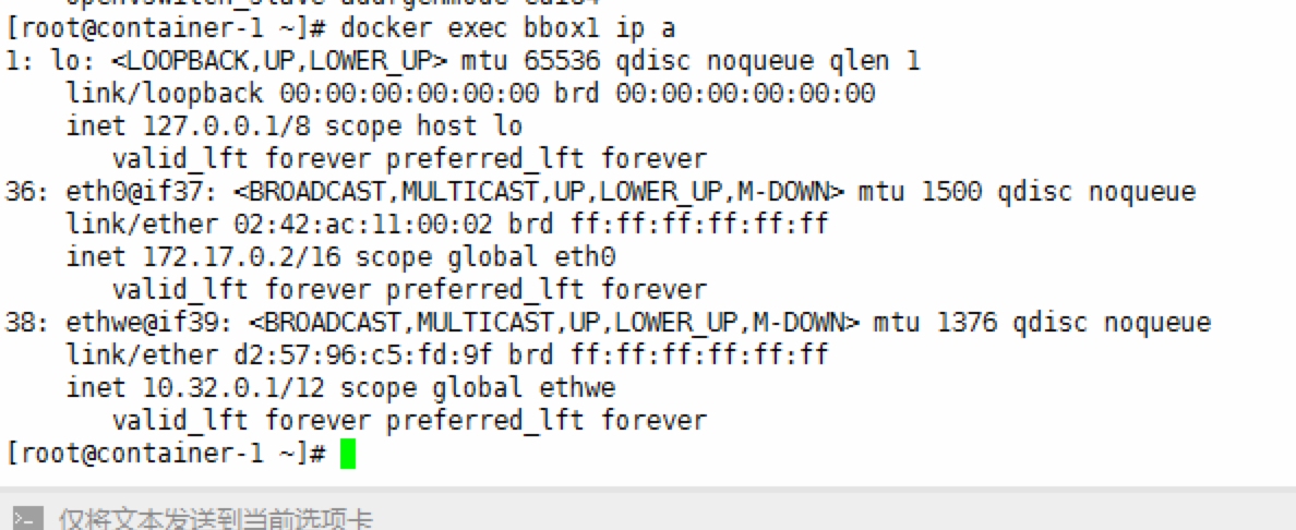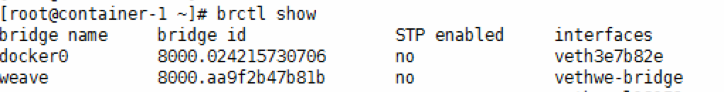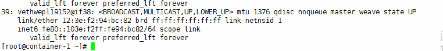 bbox1有两个网络接口eth0和ethwe,eth0桥接的是默认docker0网络。ethwe和宿主机weave网卡有关ethwe@if39表示ethwe对应编号39的interface。