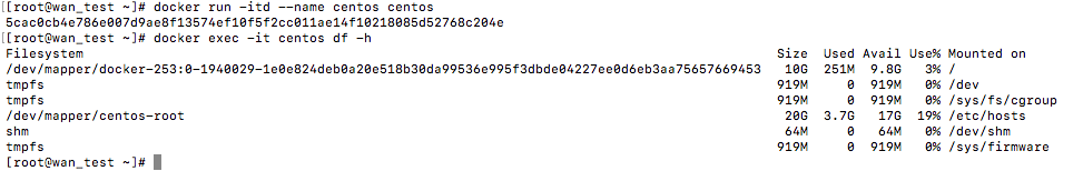 1 | docker run -itd --name centos centos |