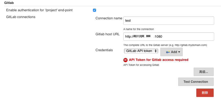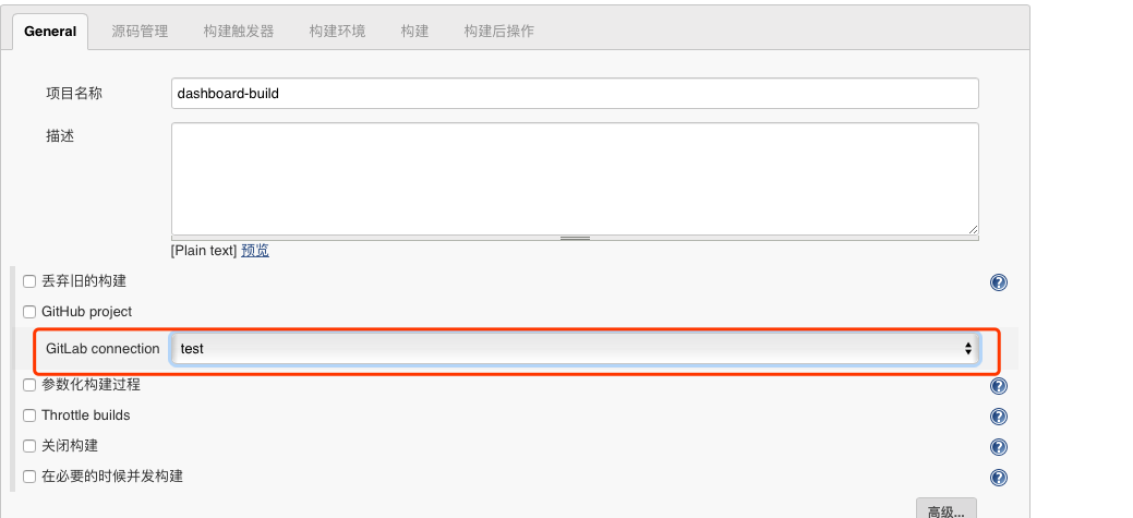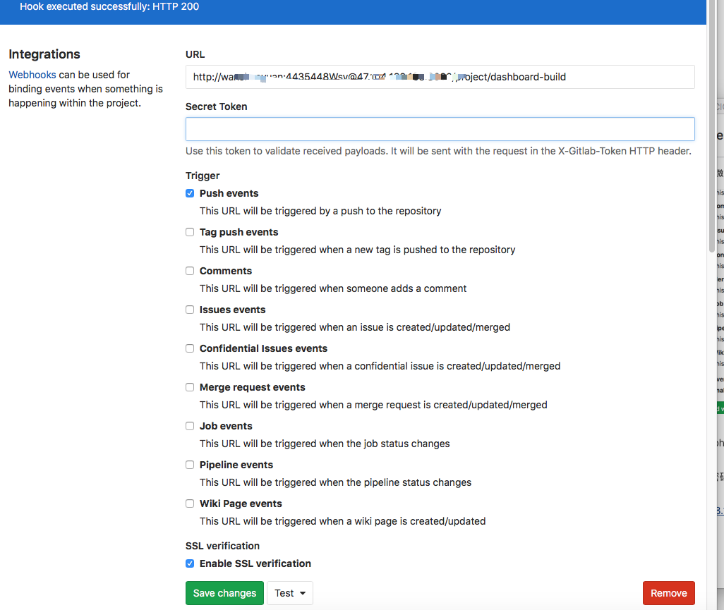 复制Build when a change is pushed to GitLab. GitLab CI Service URL: 后面那串地址链接