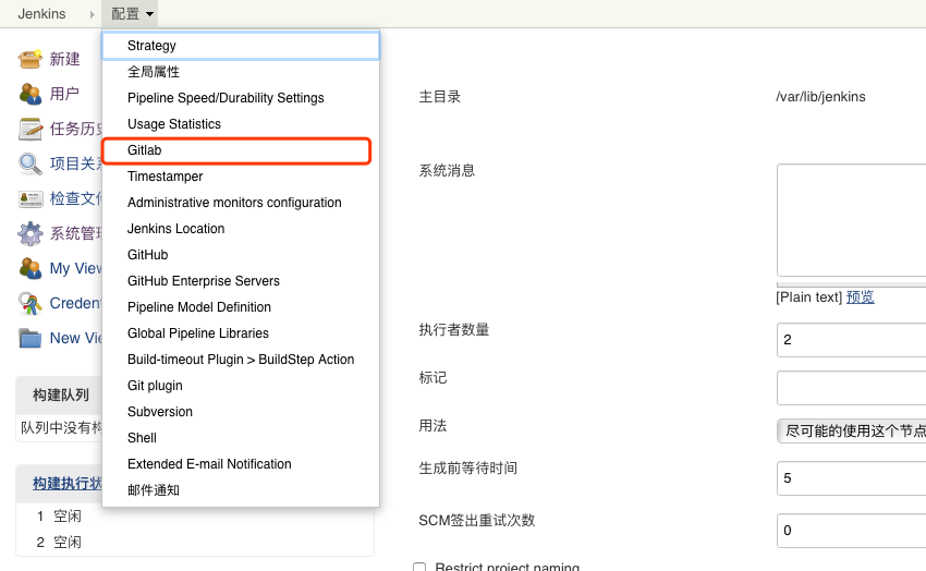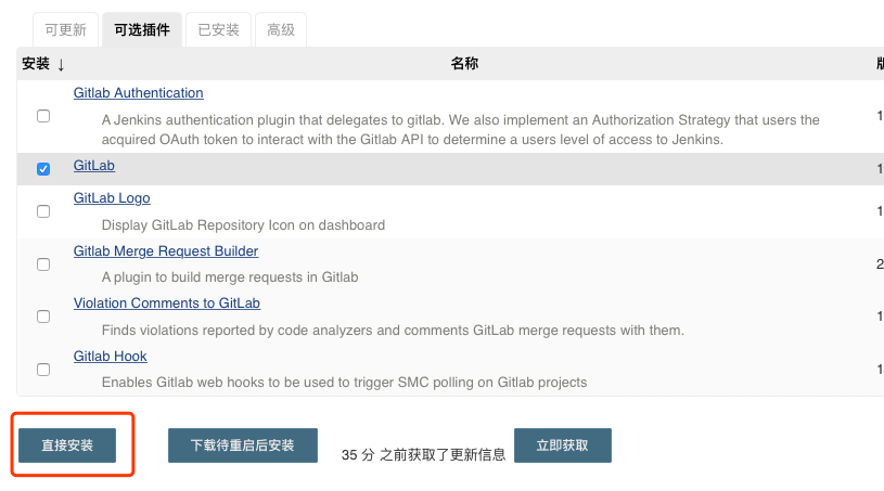 这边我们与gitlab做对接所以需要安装gitlab插件