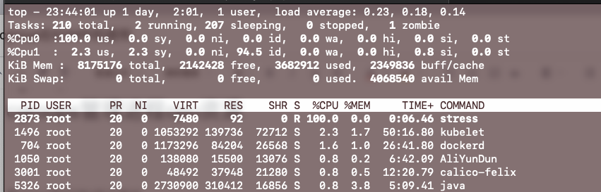 先有stress进行压力测试,占满两个逻辑核
