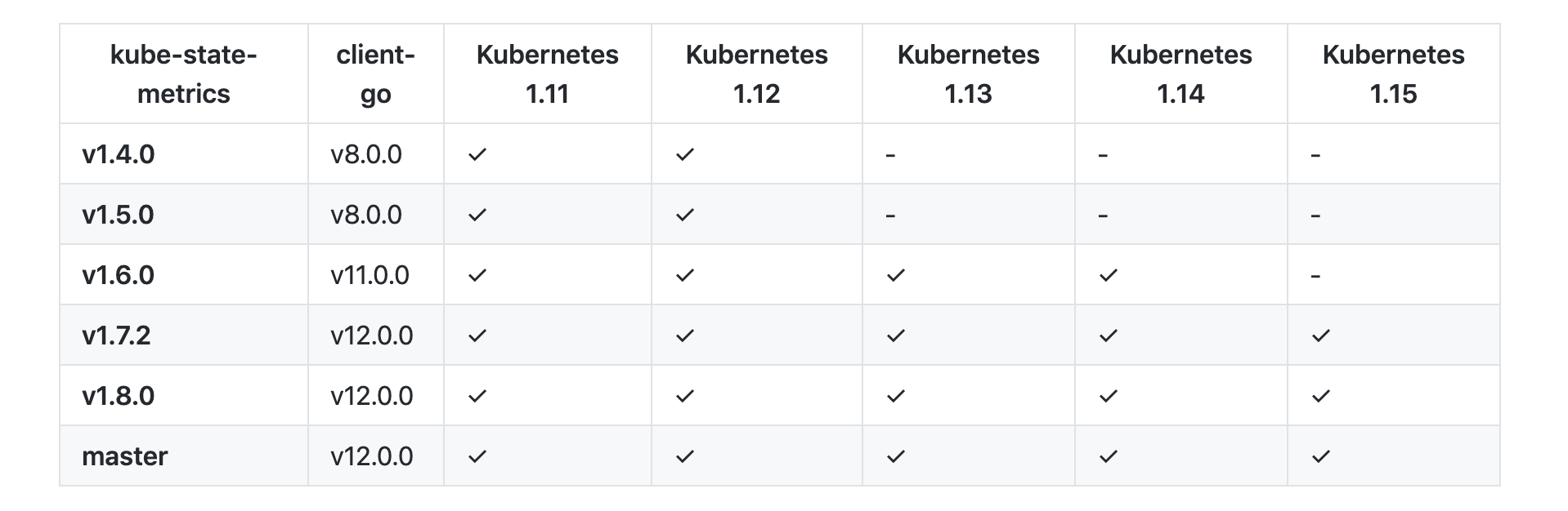 kube-state-metric对应的版本支持的Kubernetes版本信息