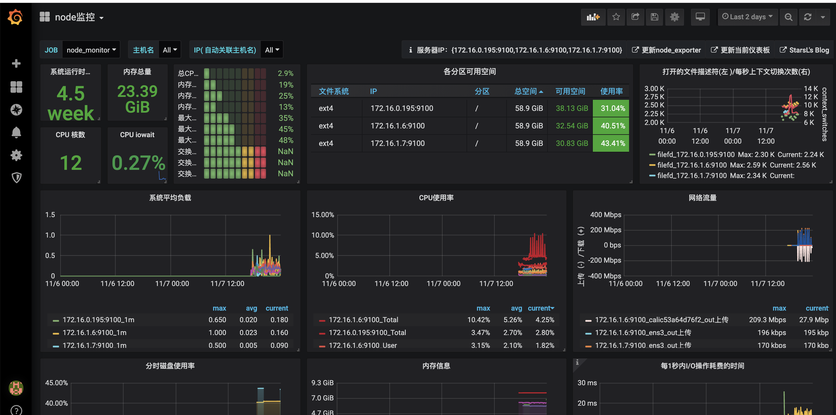 grafana:对接prometheus,将收集到的监控指标,图标化展示。