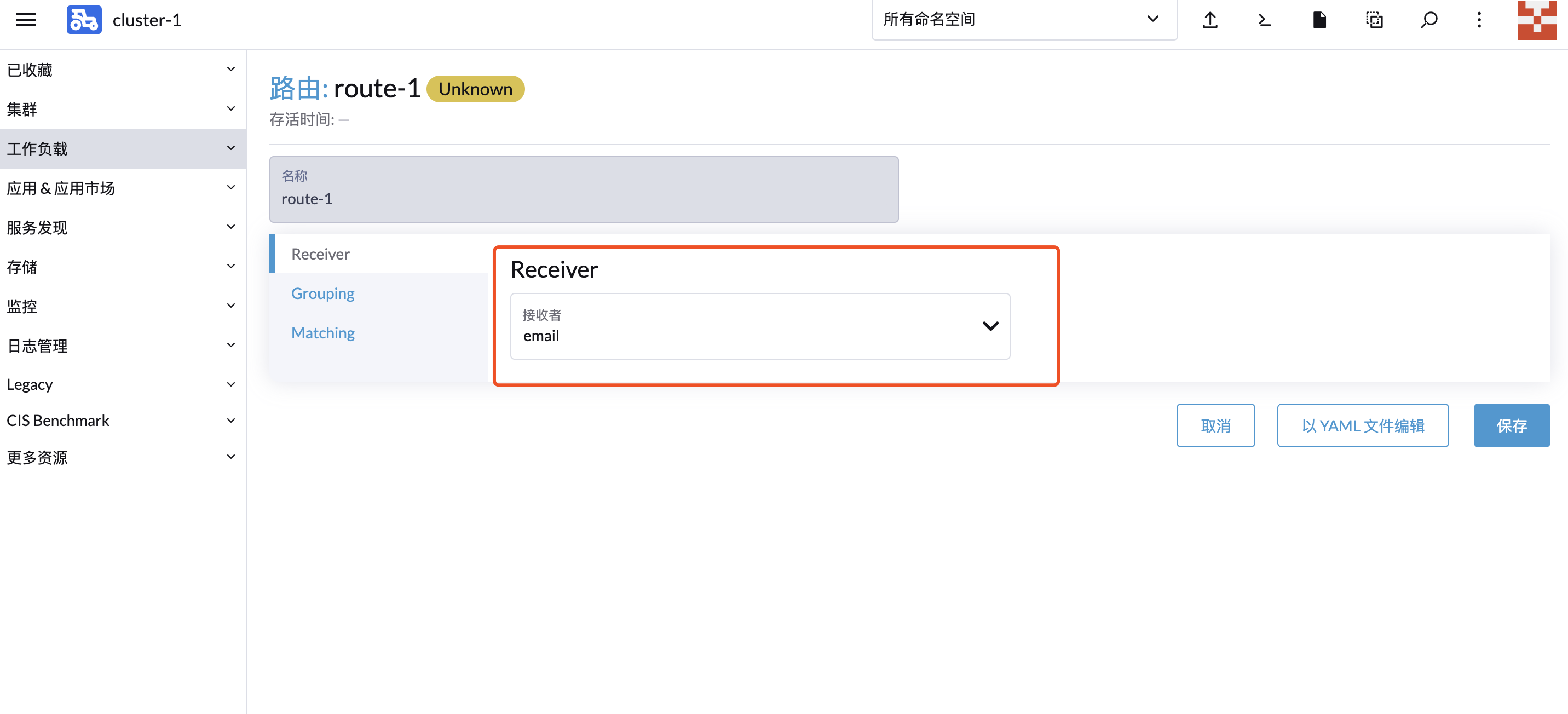 PrometheusRule用于定义告警规则,默认已经包含针对平台组件和节点的一些告警策略。可以通过配置Router和Receivers配置告警媒介将对应告警通知到相应的人员。采用Routing Tree的告警结构能够快速的将告警进行分类,然后发送到指定的人员进行处理。通过配置AlertmanagerConfig统一实现Rooter和Recivers配置