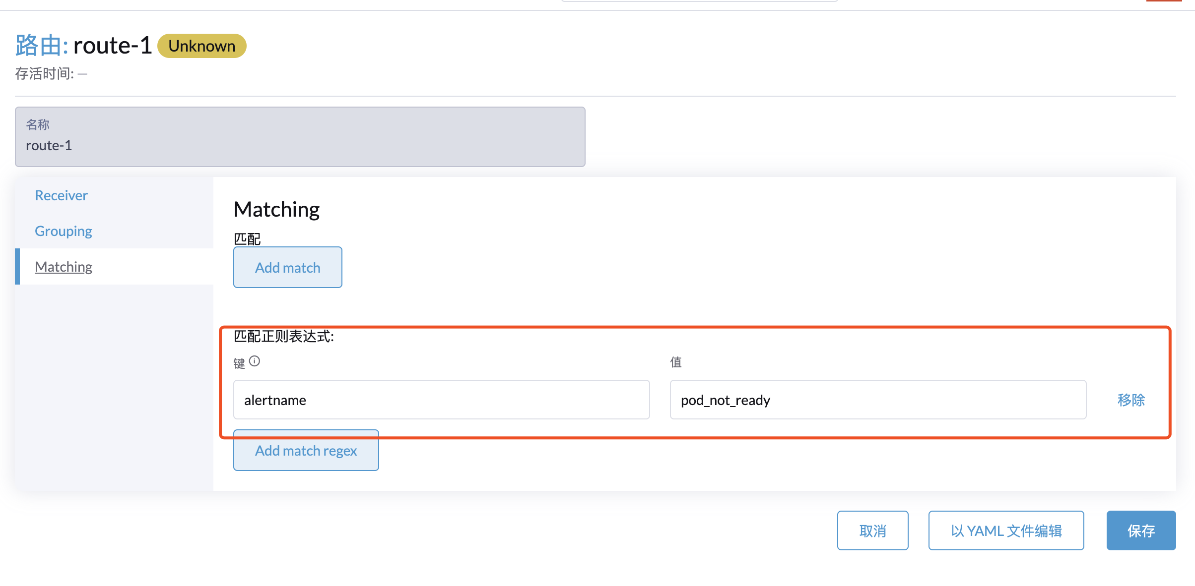 若要细分告警规则创建新的Routes通过Label与Prometheus Rules内对应的Alter name对接