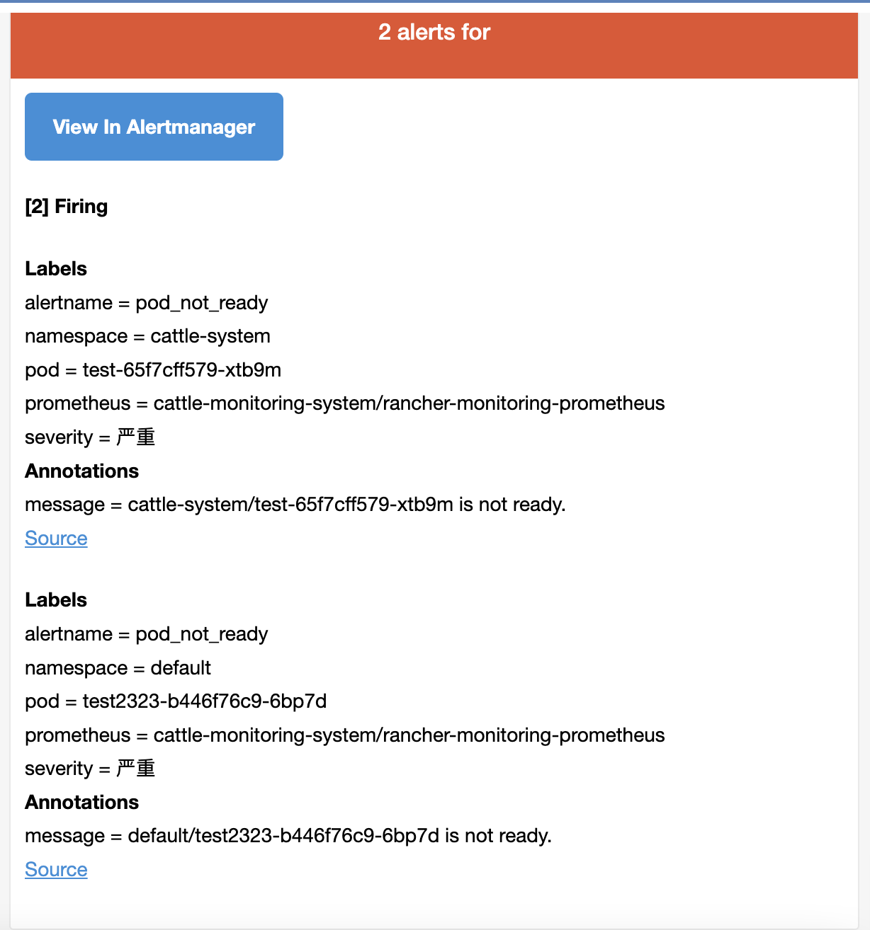 当默认的告警规则不能满足需求时,可以根据实际情况添加自定义告警,实际就是添加对应的PrometheusRule。如以下例子,添加pod非running状态的告警。