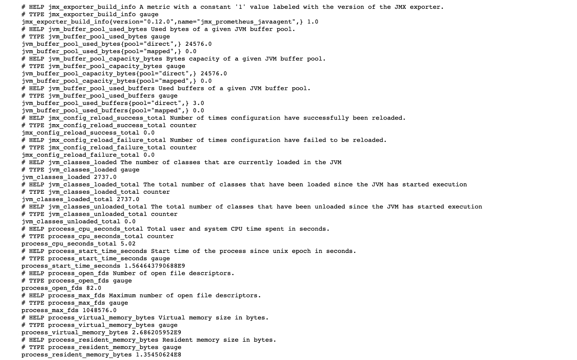 重新docker build,build后执行以下docker run命令可以查看收集的监控指标,这里6060端口就是我们的jmx-export端口