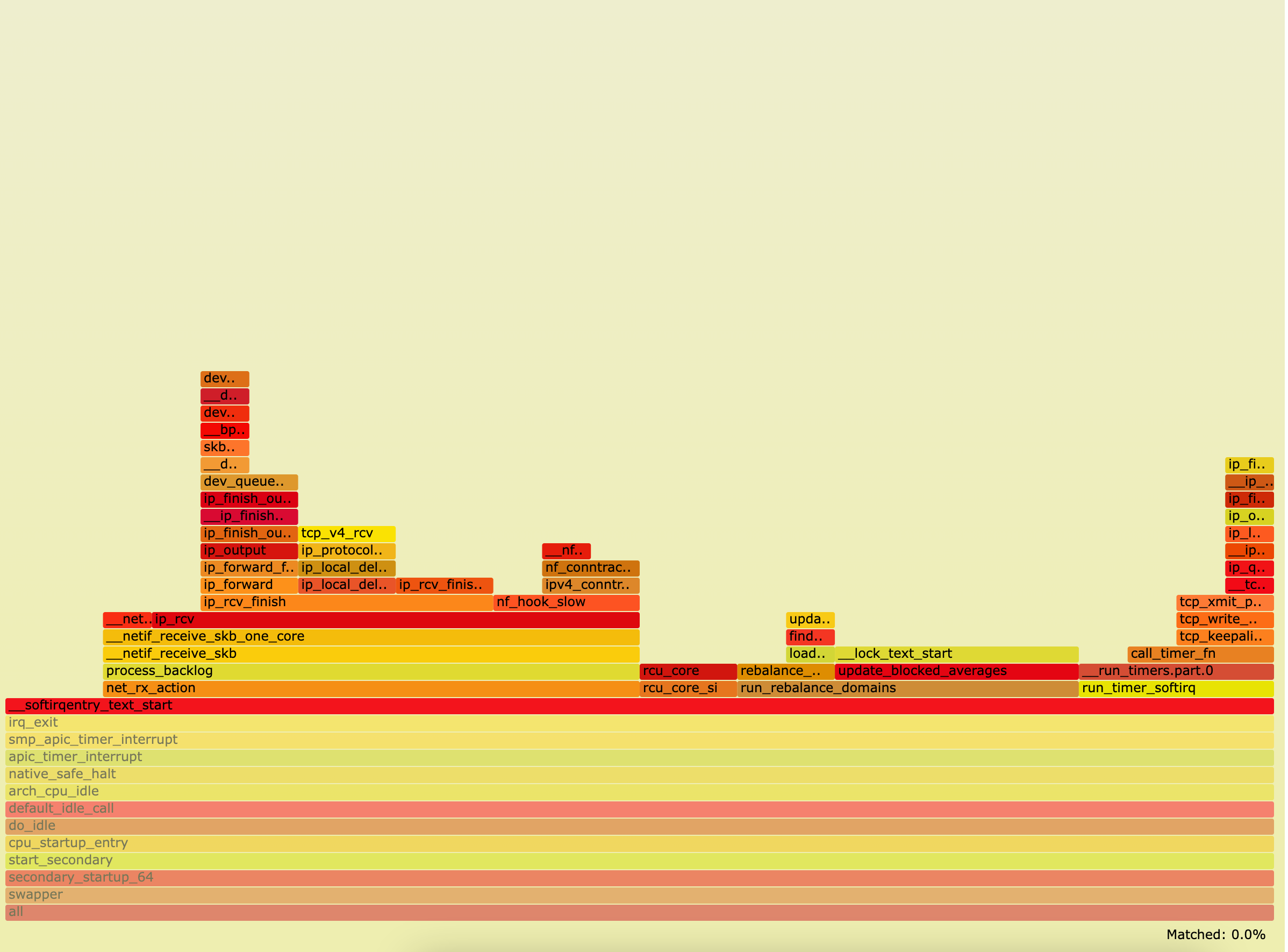 1 2 3 4 5 6 7 8 9 10 11 12 13 14 15 16 17 18 19 20 21 22 23 24 25 26 27 28 29 30 31 32 33 34 35 36 37 38 39 40 41 42 43 44 45 46 47 48 49 50 51 52 53 54 55 perf top -g Samples: 284K of event 'cpu-clock:pppH', 4000 Hz, Event count (approx.): 33836570425 lost: 0/0 drop: 0/0 Children Self Shared Object Symbol - 20.27% 0.09% perf [.] __ordered_events__flush.part.0 ◆ - 2.20% __ordered_events__flush.part.0 ▒ - 2.56% deliver_event ▒ - 3.39% hist_entry_iter__add ▒ - 3.79% iter_add_next_cumulative_entry ▒ - 3.03% __hists__add_entry.constprop.0 ▒ 3.79% hists__findnew_entry ▒ - 1.54% callchain_append ▒ - 2.64% append_chain_children ▒ - 2.22% append_chain_children ▒ - 1.73% append_chain_children ▒ - 1.34% append_chain_children ▒ 1.07% append_chain_children ▒ + 20.13% 0.18% perf [.] deliver_event ▒ + 18.62% 0.04% perf [.] hist_entry_iter__add ▒ + 14.47% 0.80% perf [.] iter_add_next_cumulative_entry ▒ + 12.05% 0.96% [kernel] [k] do_syscall_64 ▒ + 8.99% 0.00% perf [.] process_thread ▒ + 8.93% 0.22% [kernel] [k] do_idle ▒ + 8.83% 1.06% [kernel] [k] __softirqentry_text_start ▒ + 8.24% 6.28% perf [.] append_chain_children ▒ + 7.11% 0.06% perf [.] callchain_append ▒ + 5.96% 4.75% libc-2.31.so [.] pthread_attr_setschedparam ▒ + 5.74% 0.25% perf [.] __hists__add_entry.constprop.0