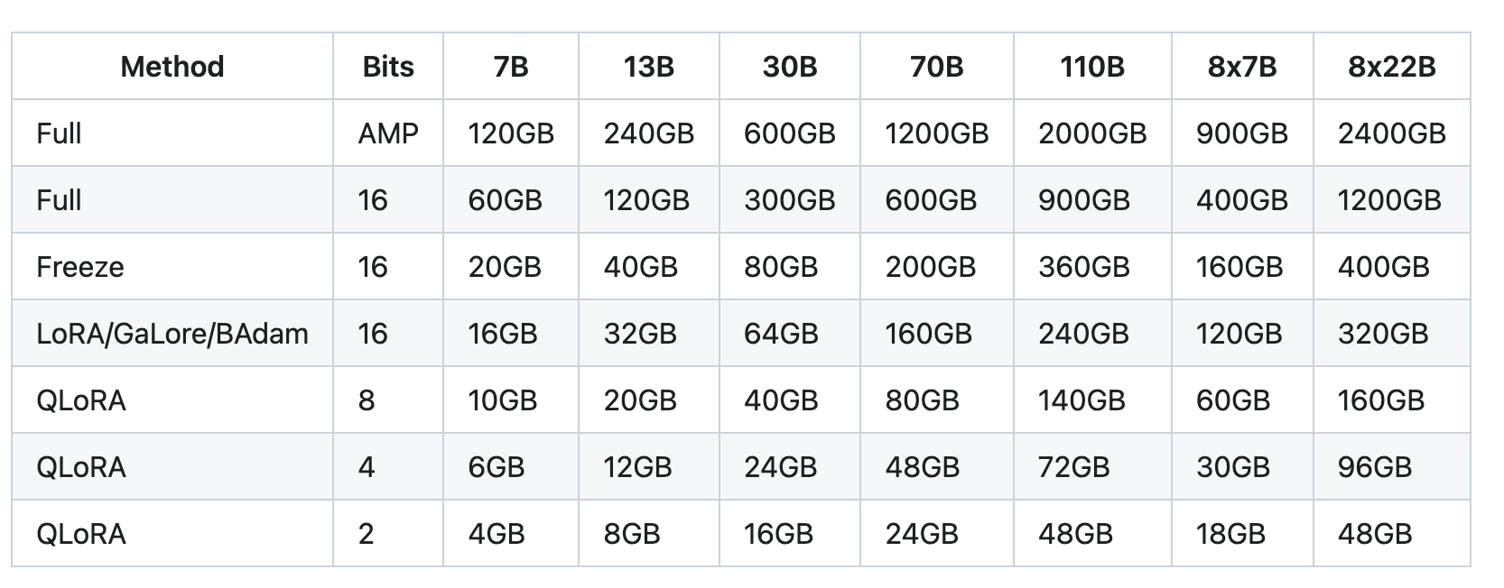 实际在训练中,会使用多卡并行的分布式训练使用ZeRO技术进行显存优化,现在也集成到DeepSpeed库中了。另外当前也很多场景也都是使用PEFT(微调技术)进行部分参数训练比如使用Lora和QLoRA进行训练。这个可以在对应的微调框架内如LLaMA-Factory(https://github.com/hiyouga/LLaMA-Factory)Unsloth查看